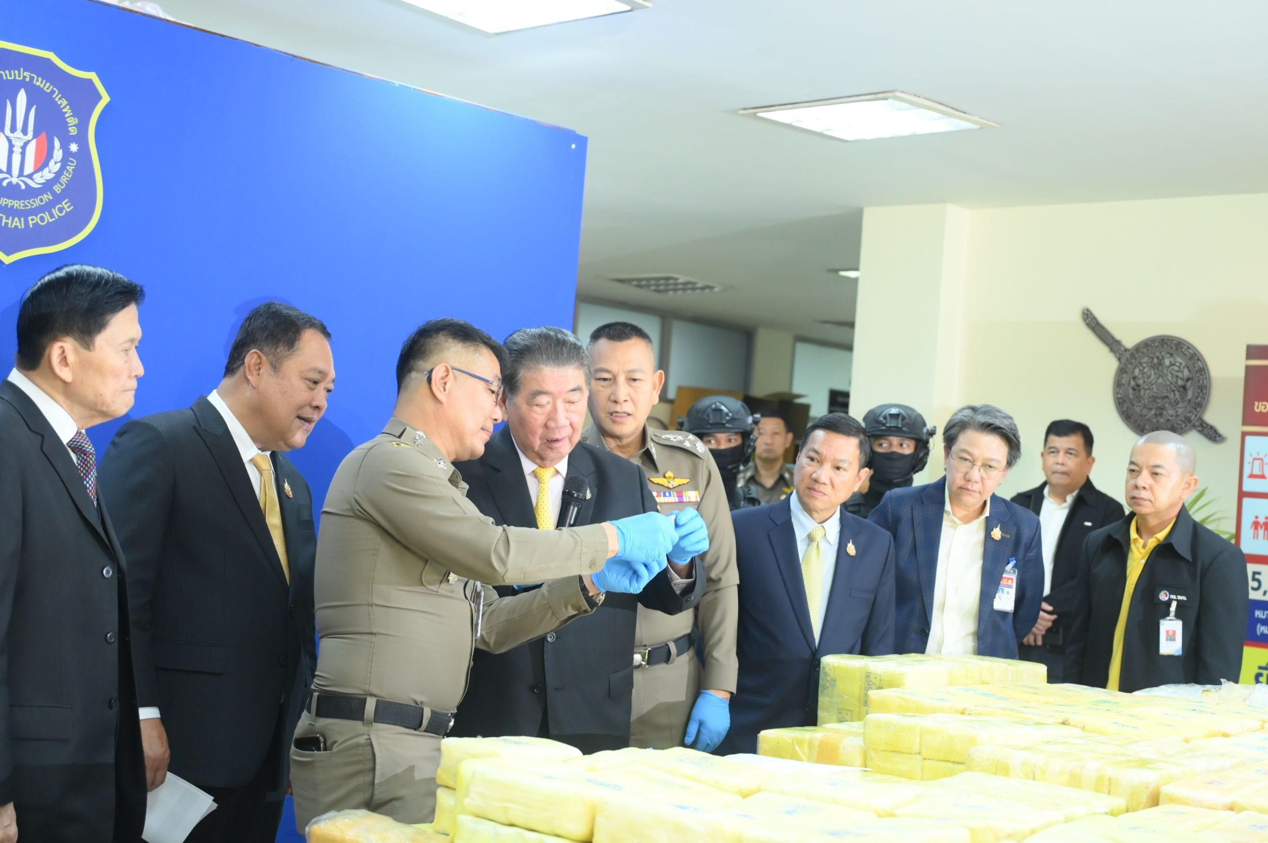 โดยมี พ.ต.อ.ทวี สอดส่อง รมว.ยุติธรรม นายอรรษิษฐ์ สัมพันธรัตน์ ปลัดกระทรวงมหาดไทย พล.ต.อ.กิตติ์รัฐ พันธุ์เพ็ชร์ ผู้บัญชาการตำรวจแห่ง น.ส.อารีภักดิ์ เงินบำรุง รองเลขาธิการคณะกรรมการป้องกันและปราบปรามยาเสพติด (ป.ป.ส.) พล.ต.ท.สำราญ นวลมา ผู้ช่วยผู้บัญชาการตำรวจแห่งชาติ พล.ต.ท.สันติ ชัยนิรามัย ผู้บัญชาการตำรวจปราบปรามยาเสพติด (บช.ปส.) และหน่วยงานที่เกี่ยวข้อง ร่วมแถลงข่าว