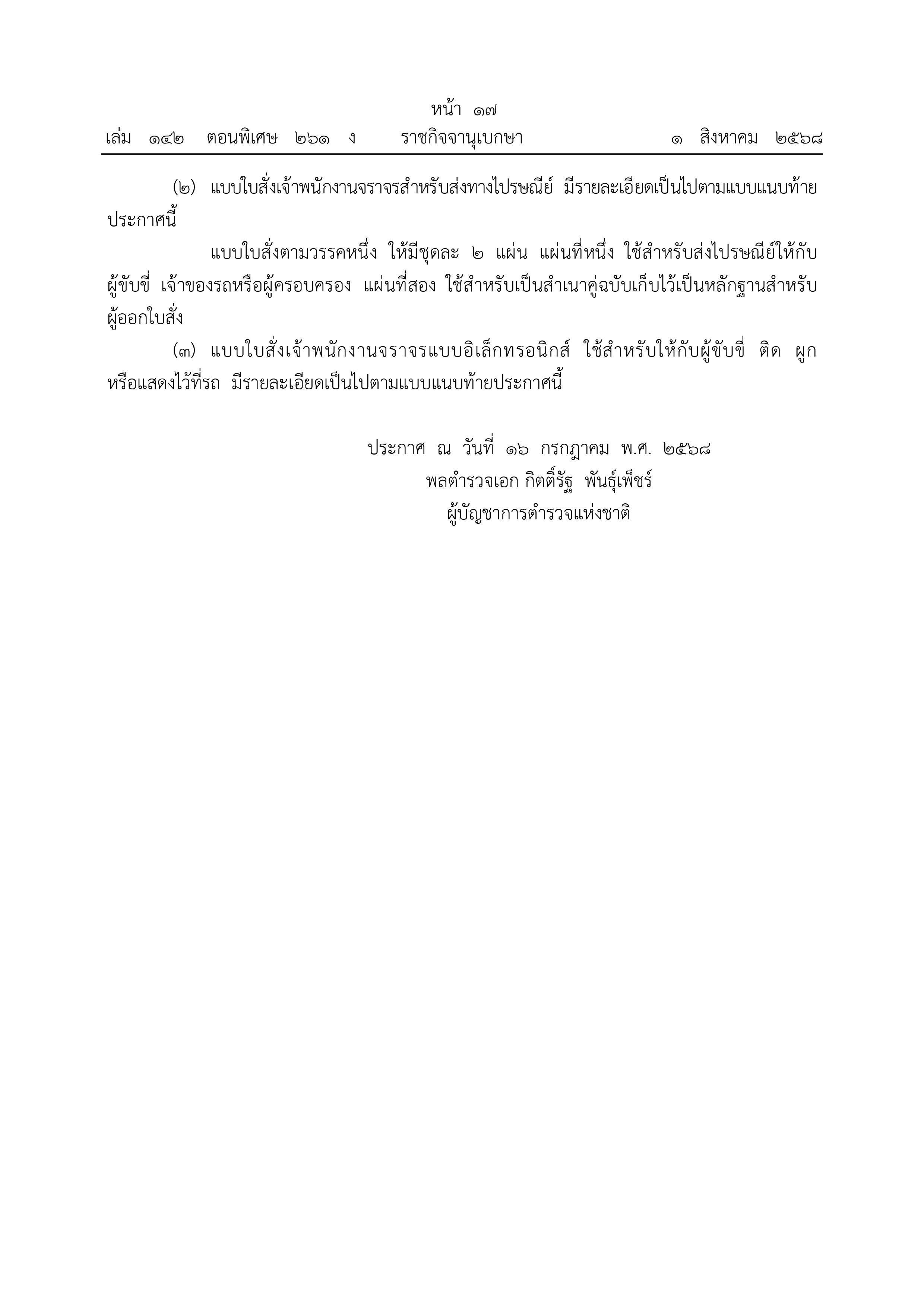 ราชกิจจาฯ ประกาศกำหนดแบบ ใบสั่งจราจร 2568 มี 3 แบบ เริ่มใช้ 4 ส.ค.นี้