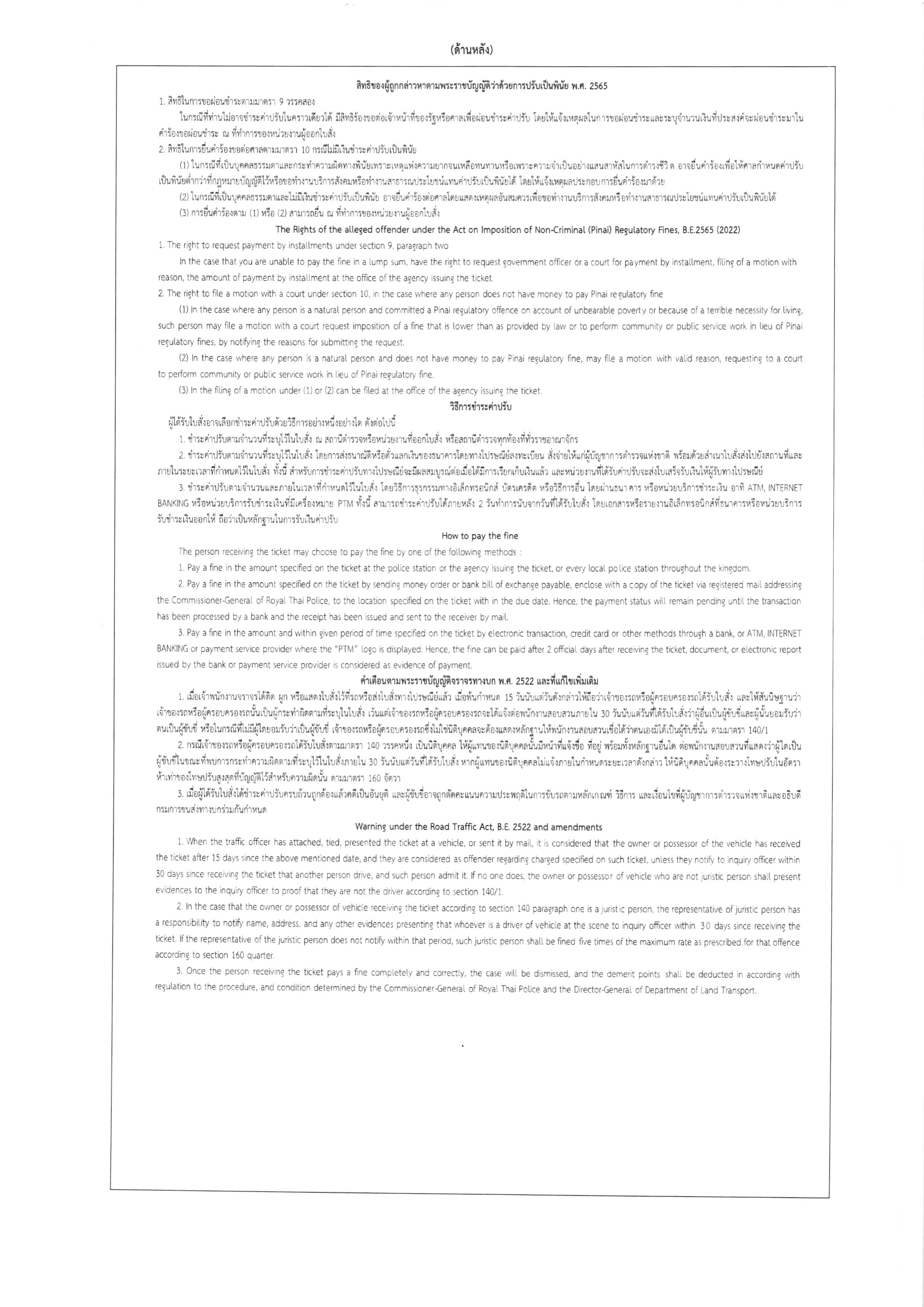 - (2) ประกาศสำนักงานตำรวจแห่งชาติ เรื่อง กำหนดแบบใบสั่งเจ้าพนักงานจราจร (ฉบับที่ 2) พ.ศ. 2564 ลงวันที่ 24 มิถุนายน 2564