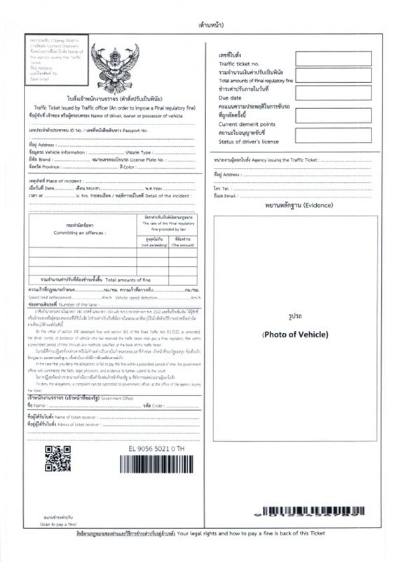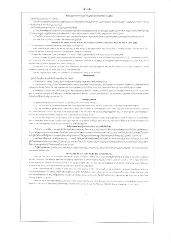 - (1) ประกาศสำนักงานตำรวจแห่งชาติ เรื่อง กำหนดแบบใบสั่งเจ้าพนักงานจราจร พ.ศ. 2563 ลงวันที่ 20 กรกฎาคม 2563