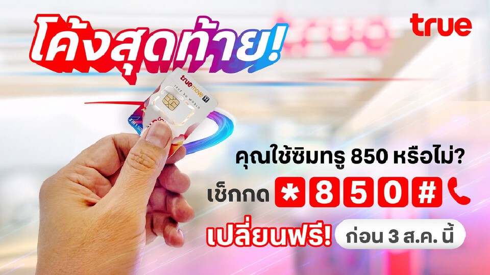 ที่มา : วิธีเช็กซิมทรู 850 MHz ใครใช้อยู่รีบเปลี่ยน 3 ส.ค.68 วันสุดท้าย