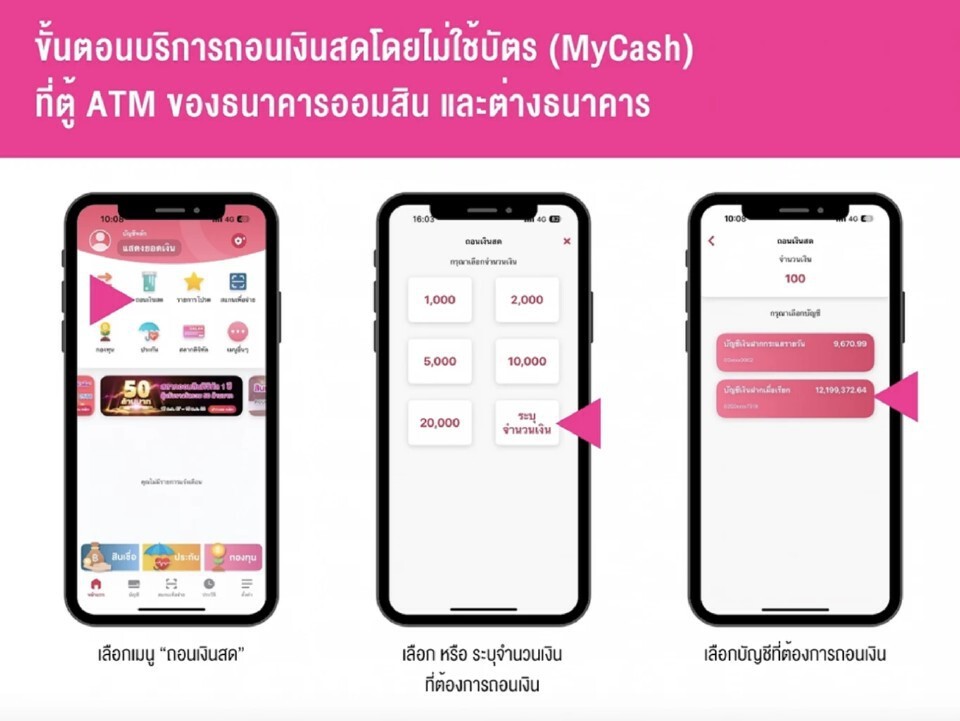วิธีถอนเงินสดโดยไม่ใช้บัตร (MyCash) ที่ตู้ ATM ของ ธนาคารออมสิน และ ต่างธนาคาร