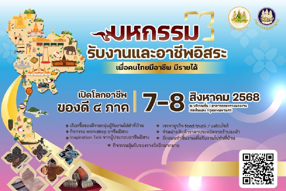 กระทรวงแรงงาน เตรียมจัด"มหกรรมรับงานและอาชีพอิสระ เพื่อคนไทยมีอาชีพ มีรายได้ ”วันที่ 7-8 ส.ค.68