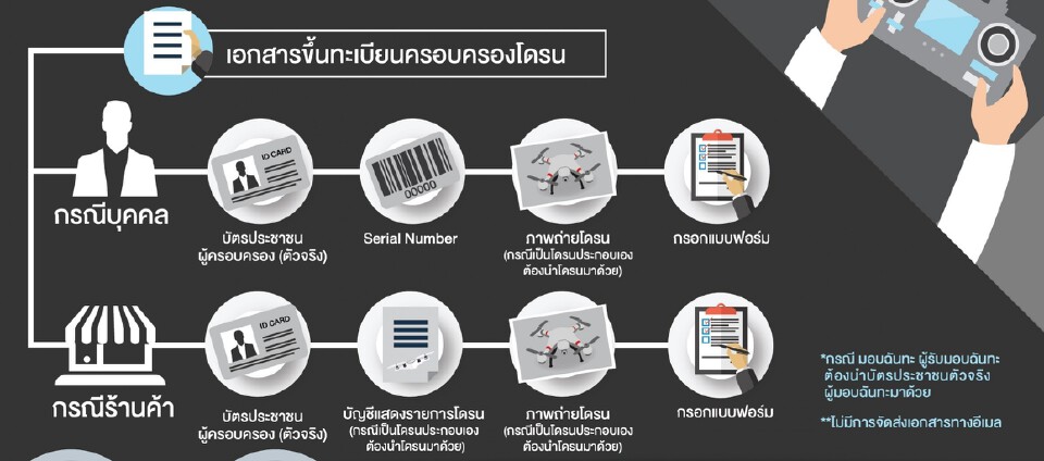 เอกสารที่ต้องใช้ลงทะเบียนใบอนุญาตครอบครองโดรน