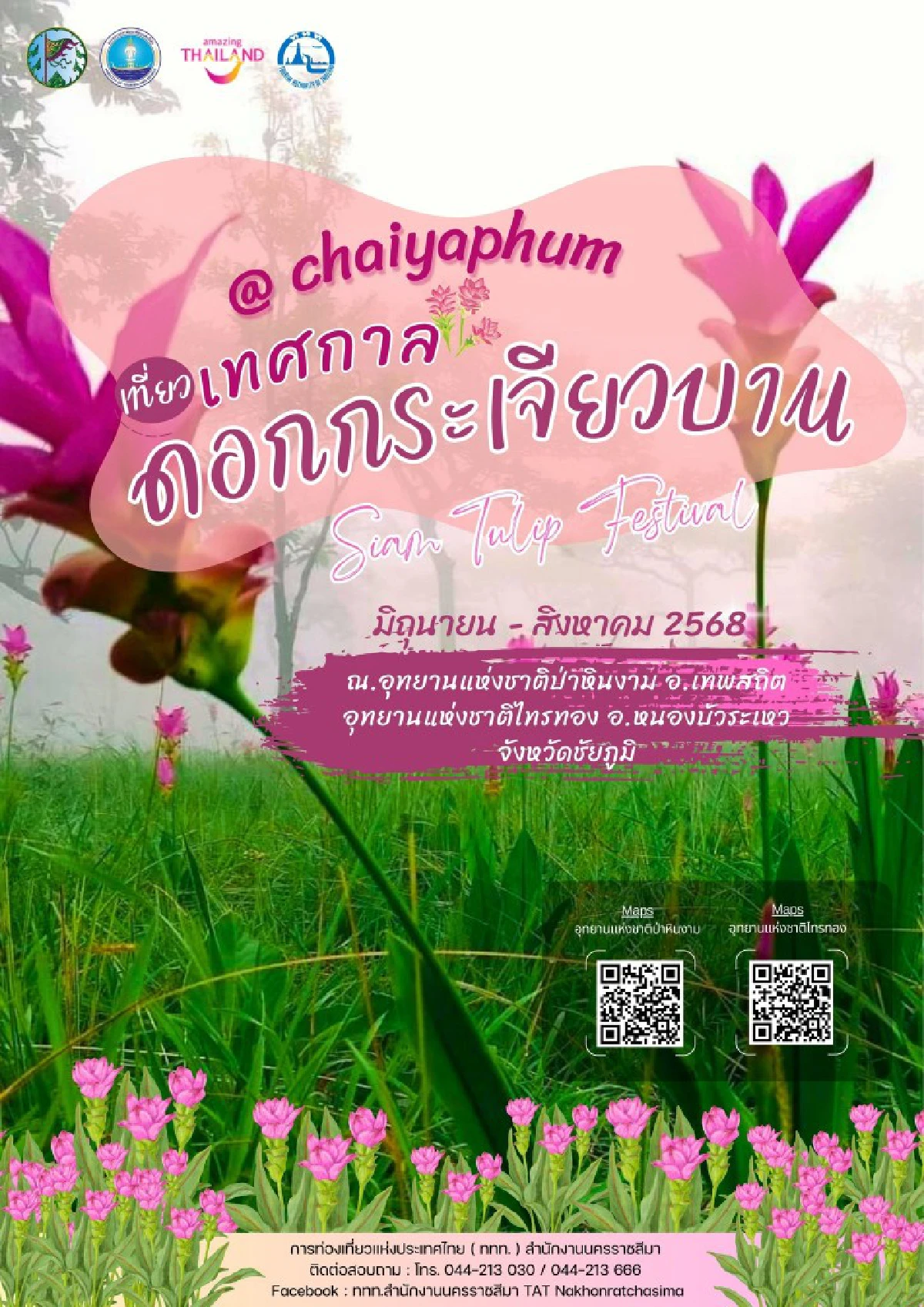 - ชมทุ่งดอกกระเจียวบาน: ที่อุทยานแห่งชาติไทรทอง จังหวัดชัยภูมิ