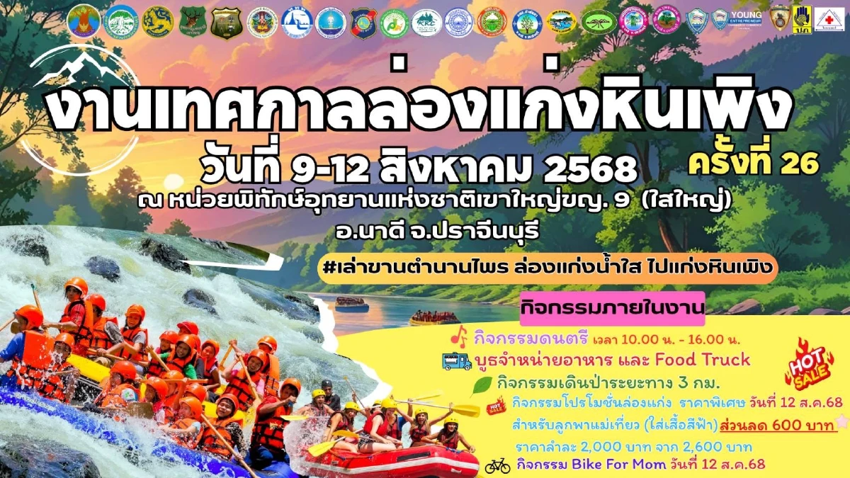 - เทศกาลล่องแก่งหินเพิง จ.ปราจีนบุรี (9-12 สิงหาคม 2568)