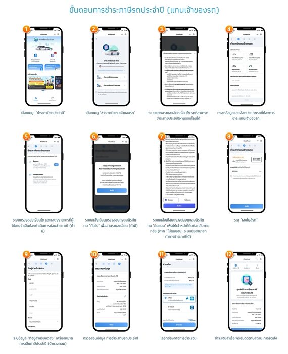 - เลือกรูปแบบการชำระภาษีประจำปีสำหรับรถ (ชำระภาษีประจำปีสำปีสำหรับรถของตนเอง หรือชำระภาษีแทนเจ้าของรถ)