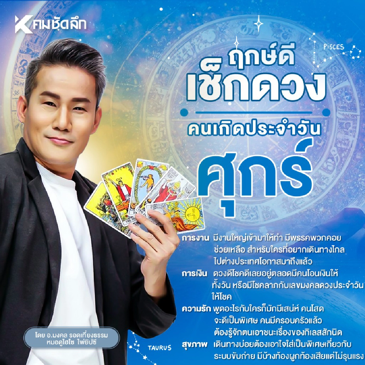 ที่มา : "ดูดวงวันนี้" วันศุกร์ที่ 15 ส.ค. 2568 เลขเด็ด เลขมงคล ดวงประจำวันให้โชค | คมชัดลึก