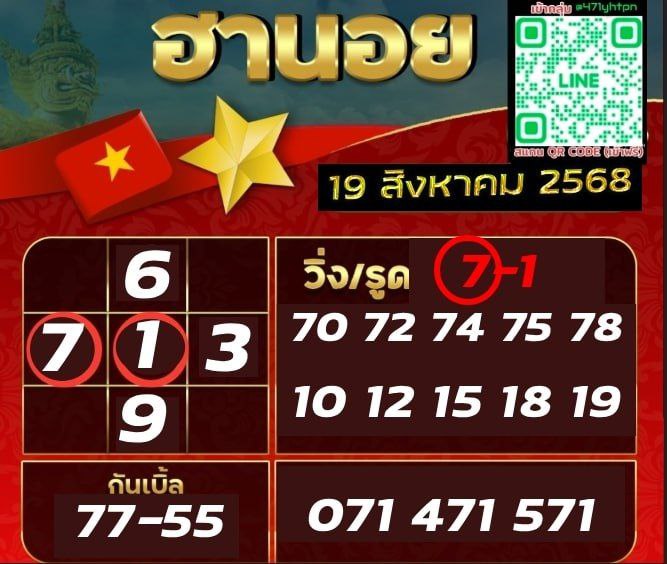ชุดเลขเด็ดหวยฮานอย วันที่ 19/8/2568