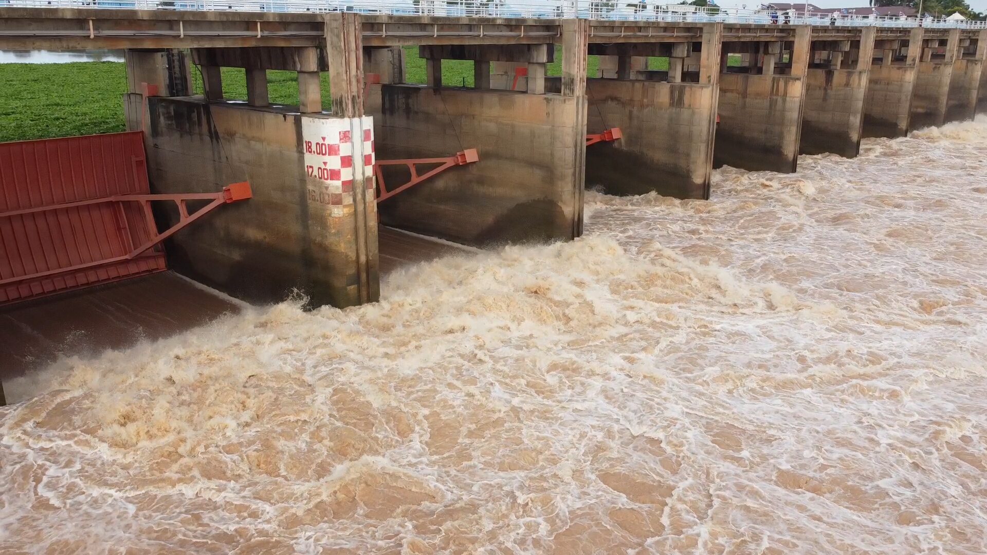 ล่าสุด สถานการณ์น้ำในเขื่อนเจ้าพระยา ต.บางหลวง อ.สรรพยา จ.ชัยนาท กุญแจสำคัญในการบริหารจัดการน้ำลุ่มภาคกลาง พบว่าน้ำเหนือที่ไหลเข้าเขื่อนเจ้าพระยา มีปริมาณเพิ่มขึ้นอย่างต่อเนื่อง แม้ว่าน้ำส่วนหนึ่งถูกตัดยอดผันเข้าทุ่งบางระกำ จ.พิษณุโลก และพื้นที่แก้มลิงเหนือเขื่อนแล้วก็ตาม โดยที่จุดวัดน้ำ C2 หน้าค่ายจิรประวัติ อ.เมืองนครสวรรค์ วัดได้ 1,554 ลบ.ม./วิ ระดับน้ำเหนือเขื่อนเจ้าพระยาทรงตัวระดับสูงในรอบ 24 ชม. วัดได้ 15.59 ม.รทก. (เมตรจากระดับน้ำทะเลปานกลาง) โดยเขื่อนเจ้าพระยาได้ปรับเพิ่มการระบายน้ำลงท้ายเขื่อนแบบขั้นบันได ล่าสุดได้เพิ่มอัตราการระบายจาก 1,200 ลบ.ม./วิ ขึ้นไปที่อัตรา 1,250 ลบ.ม./วิ และคาดว่าจะปรับขึ้นไปที่ 1,300 ลบ.ม./วิ ภายในวันนี้ เพื่อรับมวลน้ำจากฝนที่จะตกหนักทางตอนบนของประเทศไปจนถึงวันที่ 26 ส.ค. และลดผลกระทบต่อพื้นที่ลุ่มต่ำท้ายเขื่อน โดยระดับน้ำท้ายเขื่อนยกตัวขึ้น 17 ซม.ในรอบ 24 ชม. วัดได้ 12.20 ม.รทก.