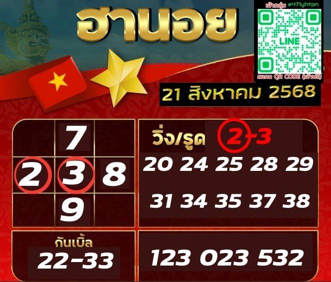 ชุดเลขเด็ดหวยฮานอย วันที่ 21/8/2568