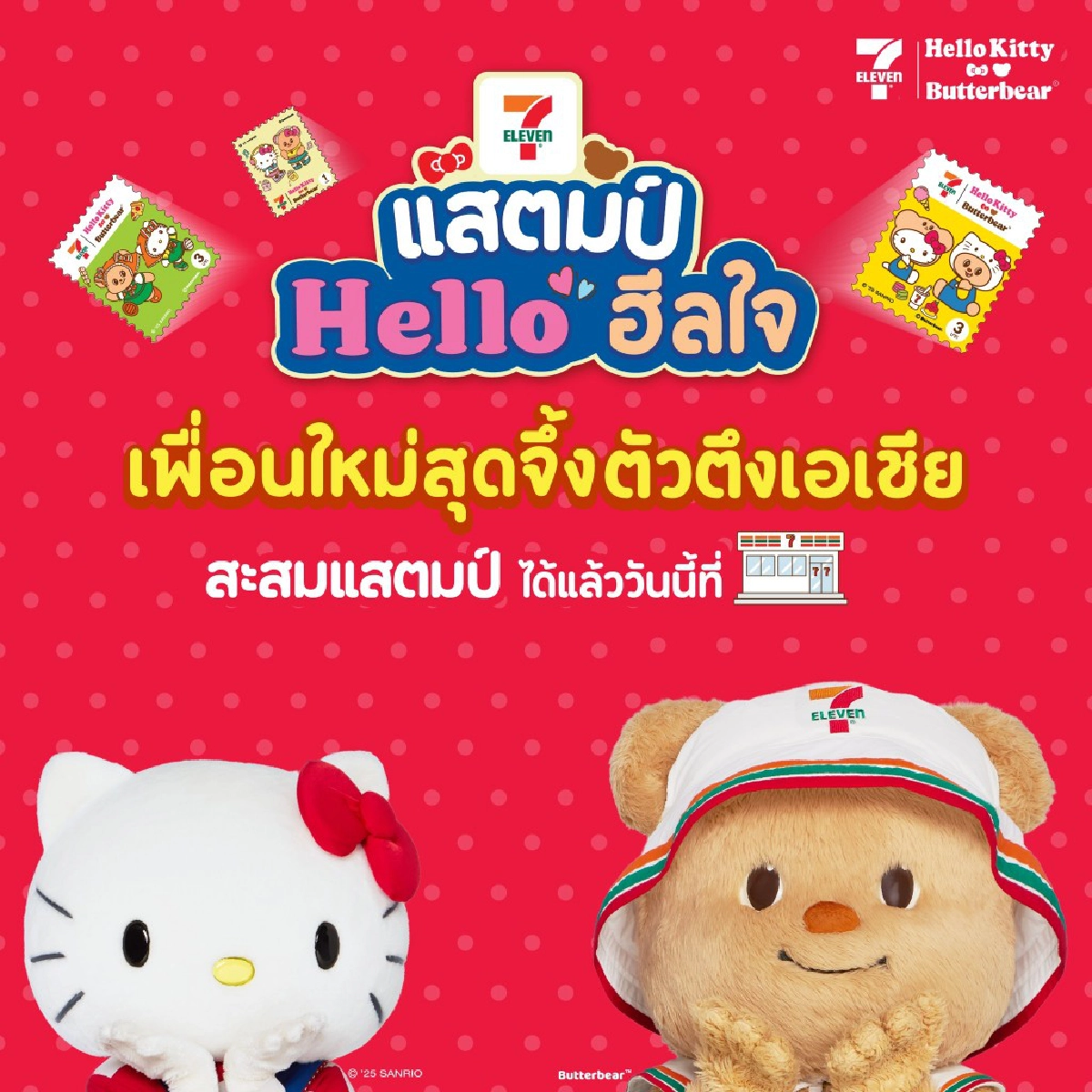 โดยมี“น้องเนย” (BUTTERBEAR)พนักงานใหม่ของเซเว่นฯ ชวนเพื่อนใหม่“พี่คิตตี้”(HELLO KITTY) ที่มาจากต่างแดน ร่วมเดินทางสุดสนุกกับการสะแสตมป์ ที่จะส่งมอบความน่ารัก ความสุข สุดคุ้ม ไปทั่วไทย ที่นอกจากจะคิวต์เกินต้านแล้วยังมาพร้อมกับโปรโมชั่นสุดคุ้มแบบจัดใหญ่ ยิ่งเก็บ ยิ่งฟิน ยิ่งคุ้ม มากกว่าใคร