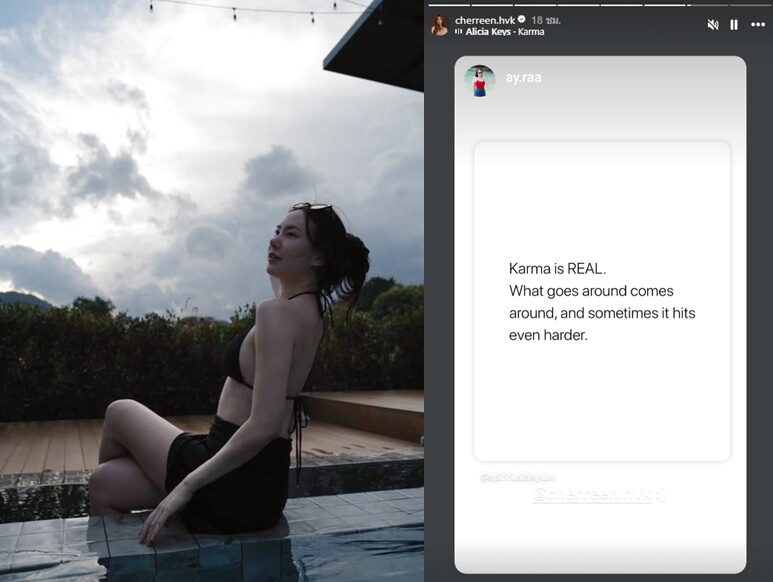 ที่มา : อ่านแล้วสะดุ้ง เชอรีน ณัฐจารี โพสต์ถึงเวรกรรมมีจริง บางครั้งก็แรง - ข่าวสด