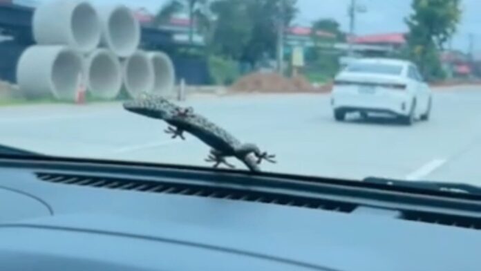 ตุ๊กแก เกาะหน้ารถไม่ยอมหล่น ตามไปด้วยจนถึงบ้าน ก่อนลงจากรถไปเอง เจ้าของเชื่อมาให้โชค คอหวยแห่ส่องทะเบียน เสี่ยงโชคงวดวันที่ 1 ก.ย.นี้