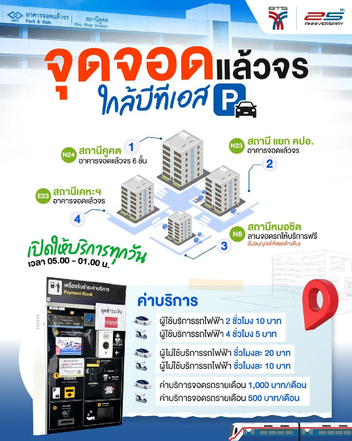 ที่มา : BTS เปิดราคาที่จอดรถ อาคารจอดแล้วจร ล่าสุด ใกล้รถไฟฟ้าบีทีเอส