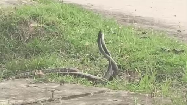 พอมองดูดีๆพบว่าเป็นงูกำลังพลอดรักกันอยู่ทางเข้าที่ทำงาน ตอนแรกตนตกใจเลยไม่กล้าขับรถเข้าไปตรงบริเวณประตู และได้หยิบมือถือมาถ่ายคลิป ซึ่งตั้งแต่เกิดมายังไม่เคยพบเห็น จึงคิดว่าเป็นรื่องแปลก และมีความเชื่อว่างูตัวนี้จะต้องมาให้โชคอย่างแน่นอน