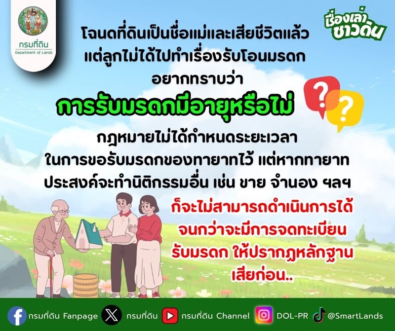 กรมที่ดิน มีคำตอบ การรับมรดกมีอายุหรือไม่ ทำนิติกรรมอะไรไม่ได้