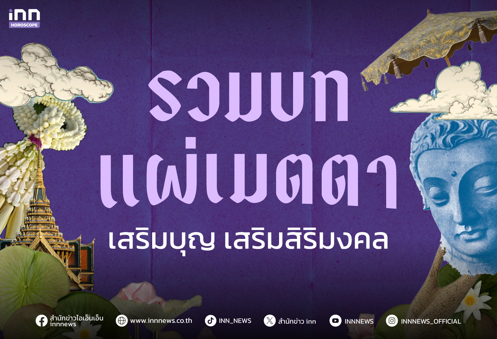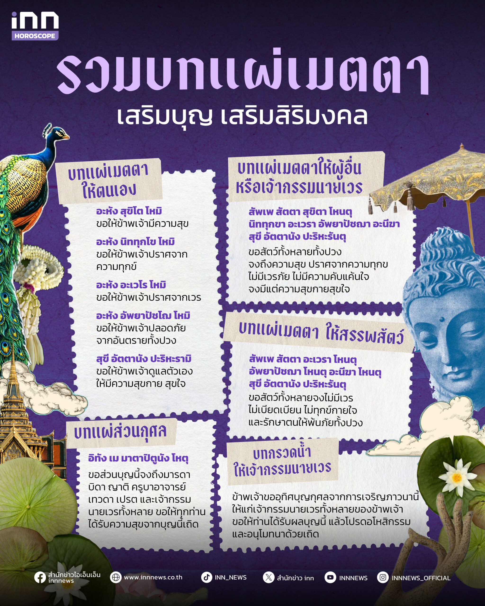 นอกจากบทแผ่เมตตาแล้ว อย่าลืมหมั่นนั่งสมาธิและทำจิตใจให้สงบ และถ้าใครที่มีความชอบในการอ่านดวง อยากเสริมดวง เสริมโชคลาภในรูปแบบอื่นๆ สามารถติดตามได้ที่นี่ iNN Horoscope
