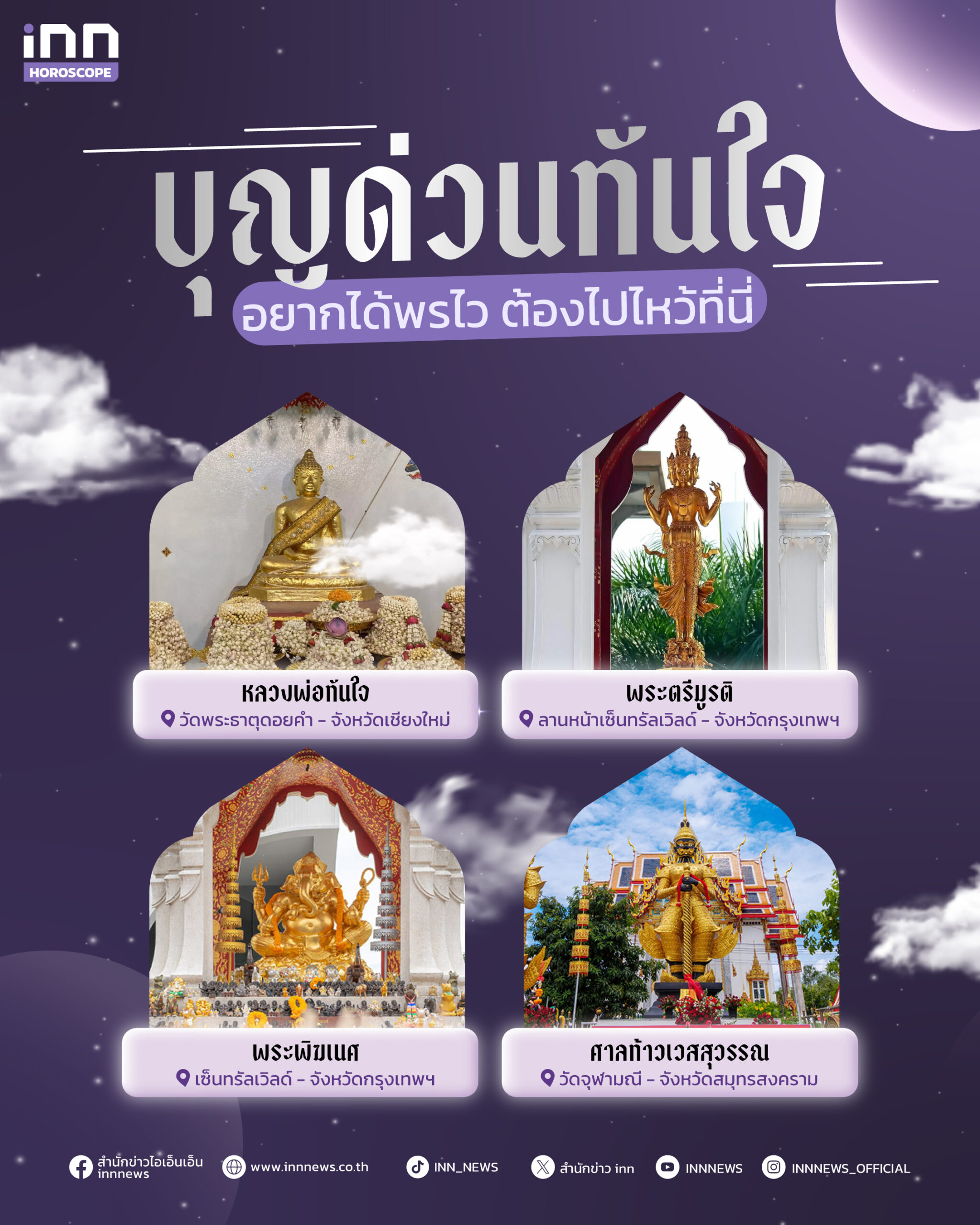 ใครอยากปังแบบทันใจ ต้องไม่พลาด 5 จุดนี้ และถ้าใครที่มีความชอบในการอ่านดวง อยากเสริมดวง เสริมโชคลาภในรูปแบบอื่นๆ สามารถติดตามได้ที่นี่ iNN Horoscope