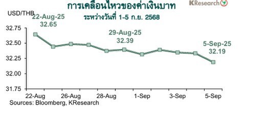 ที่มา : KBANK มองกรอบค่าเงินบาท สัปดาห์วันที่ 8-12 ก.ย. 2568 ที่ระดับ 31.80-32.80 บาทต่อดอลลาร์