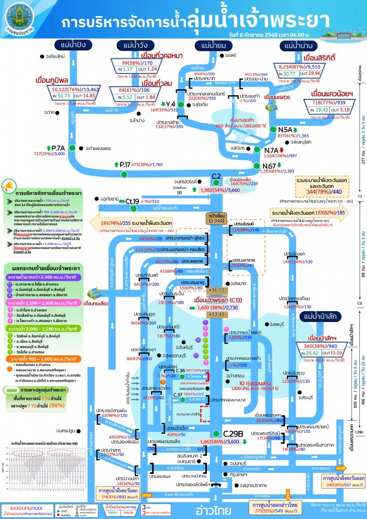 ที่มา : กรมชลฯลุยเก็บน้ำเต็มศักยภาพ คุมเข้มน้ำผ่านเขื่อนเจ้าพระยา ลดผลกระทบด้านท้ายน้ำ
