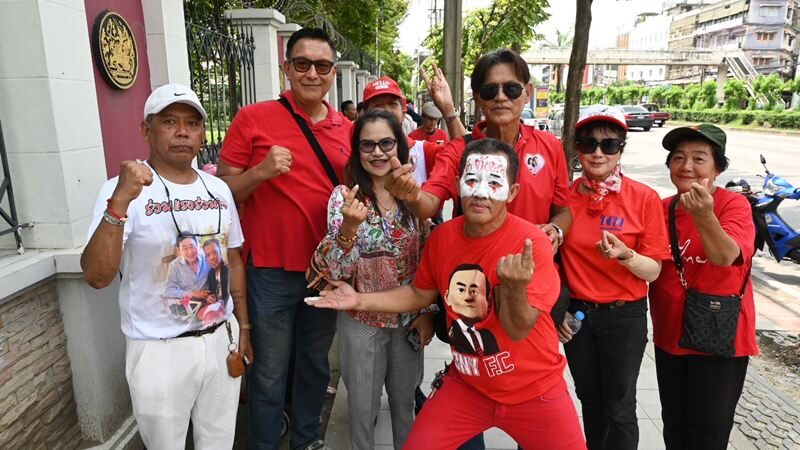 เสื้อแดงรวมตัวหน้าเรือนจำ ให้กำลังใจ 'ทักษิณ' ชี้เป็นคนทำ เพื่อประชาชน-ประเทศชาติ