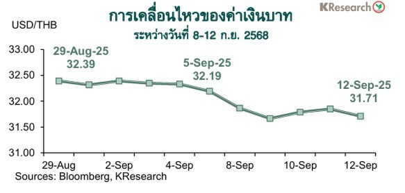ที่มา : KBANK มองกรอบค่าเงินบาท สัปดาห์วันที่ 15-19 ก.ย. 68 ที่ระดับ 31.20-32.00 บาทต่อดอลลาร์