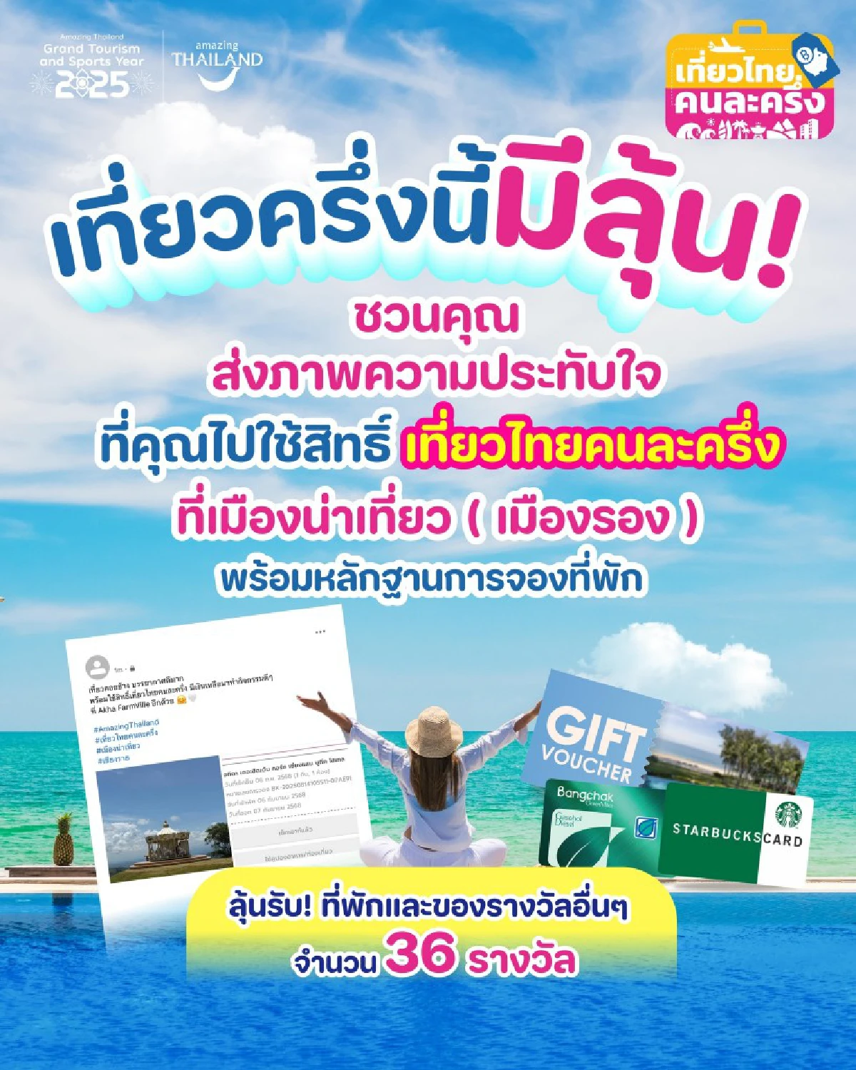 คอเที่ยวเฮลั่น ททท. แจกใหญ่ เริ่มแล้ว "คนละครึ่ง 2568" จัดให้ก่อน แคมเปญ เที่ยวไทยคนละครึ่ง มีสิทธิ์ได้รางวัลทุกคนทั่วไทย ทั้งผู้สูงอายุ บุคคลทั่วไป เล่นได้หมด ให้ ที่พักฟรี บัตรเติมน้ำมัน ค่ากาแฟ ครบจบ ไม่ต้องลงทะเบียน เล่นเลยในเพจ Amazing Thailand เพียงแค่มีภาพประทับใจจากการเดินทางเที่ยวเมืองรอง ก็มีสิทธิ์ร่วมสนุกได้ทันที