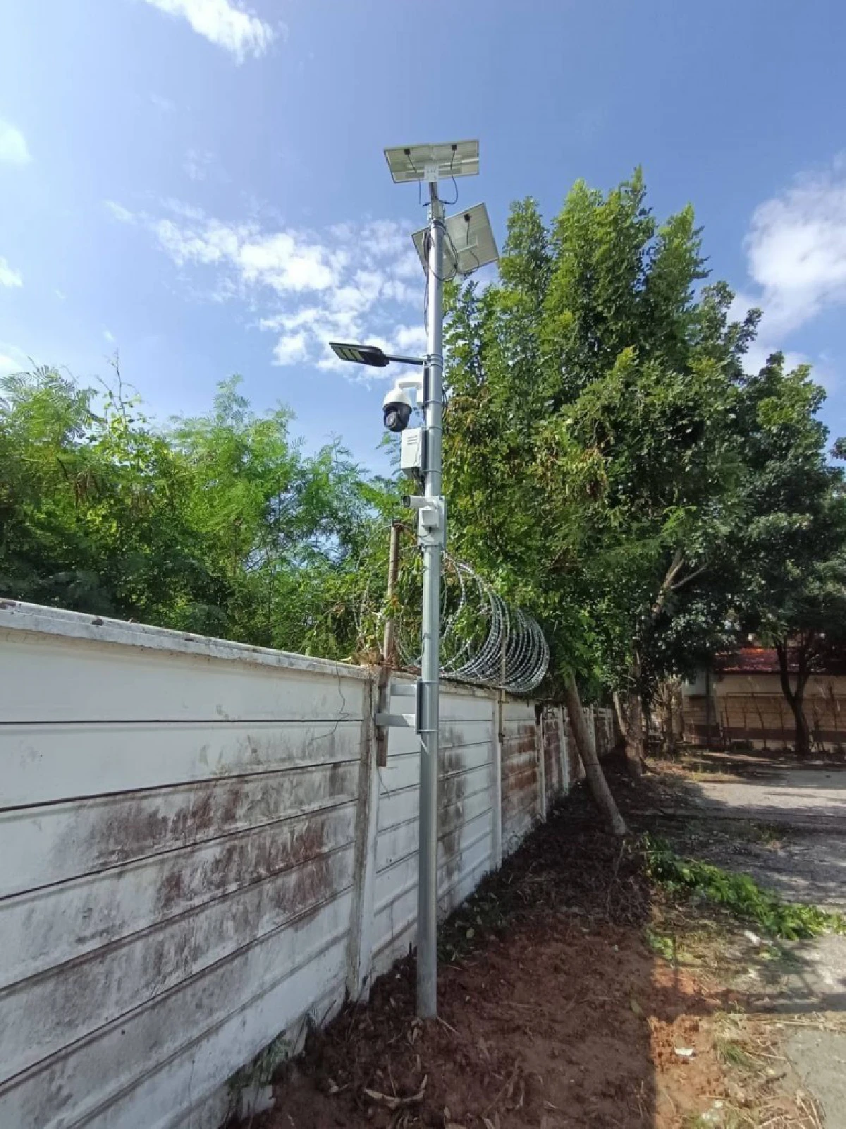 สำหรับการติดตั้งเสา CCTV ต้นแรกนี้ประกอบด้วยกล้อง 3 ตัว ได้แก่ กล้องแบบ PTZ (Pan-Tilt-Zoom) 1 ตัว และกล้องแบบ Fix อีก 2 ตัว นอกจากนี้ยังมีการติดตั้งระบบไฟส่องสว่างและระบบโซลาร์เซลล์