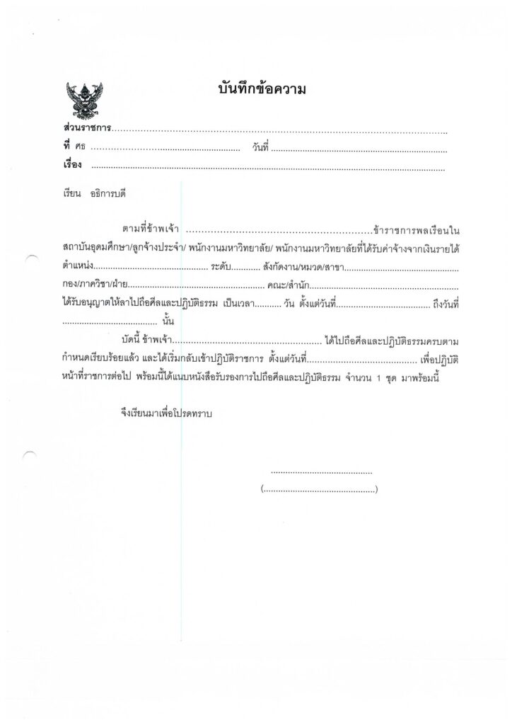 ใจความว่า ข้าราชการ เจ้าหน้าที่ และลูกจ้างของหน่วยงานภาครัฐที่เป็นสตรี ลาถือศีล และปฏิบัติธรรม ไม่ต่ำกว่า 1 เดือน แต่ไม่เกิน 3 เดือน (อยู่ในดุลยพินิจของผู้บังคับบัญชา ตามความเหมาะสม) ในสำนักปฏิบัติธรรม ที่สำนักงานพระพุทธศาสนาแห่งชาติรับรอง ซึ่งมี 587 แห่งทั่วประเทศ
