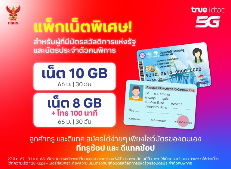 ที่มา : กสทช.ตั้งเงื่อนไข AIS-True ออกแพ็กเกจราคาพิเศษผู้พิการ-รายได้น้อย-สูงอายุ