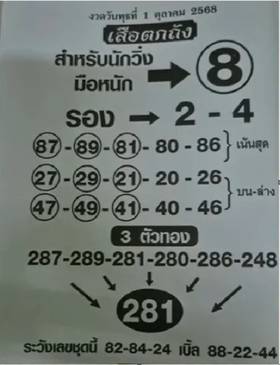 สำหรับใช้เป็นแนวทางในการเสี่ยงโชคซื้อลอตเตอรี่ โดยงวดนี้มีเลขเด่น คือ 8 และรอง คือ 2 - 4 ส่วนตัวเลขในชุดอื่น ๆ ก็มีความน่าสนใจเป็นอย่างมาก สามารถไปดูที่ใบหวยด้านล่างกระทู้กันได้เลย