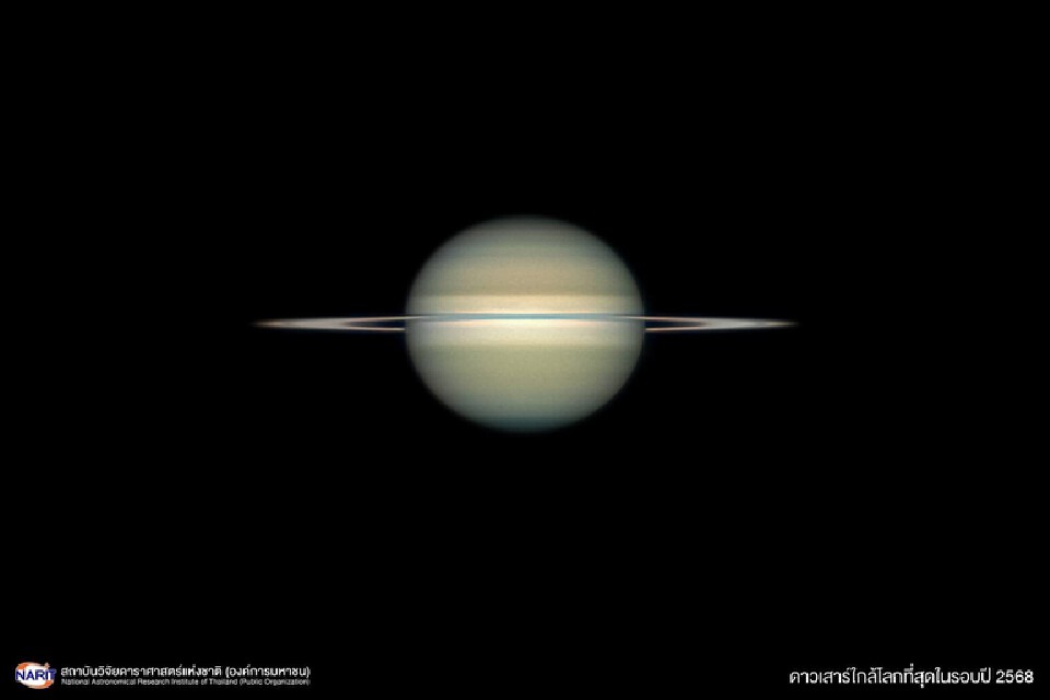 เพจ “NARIT สถาบันวิจัยดาราศาสตร์แห่งชาติ“ เผยภาพดาวเสาร์อยู่ใกล้โลกที่สุดในรอบปี ซึ่งภาพบันทึกโดยกล้องโทรทรรศน์ขนาดเส้นผ่านศูนย์กลาง 0.4 เมตร ณ หอดูดาวเฉลิมพระเกียรติ 7 รอบ พระชนมพรรษา สงขลา เผยให้เห็นวงแหวนดาวเสาร์บางเฉียบ