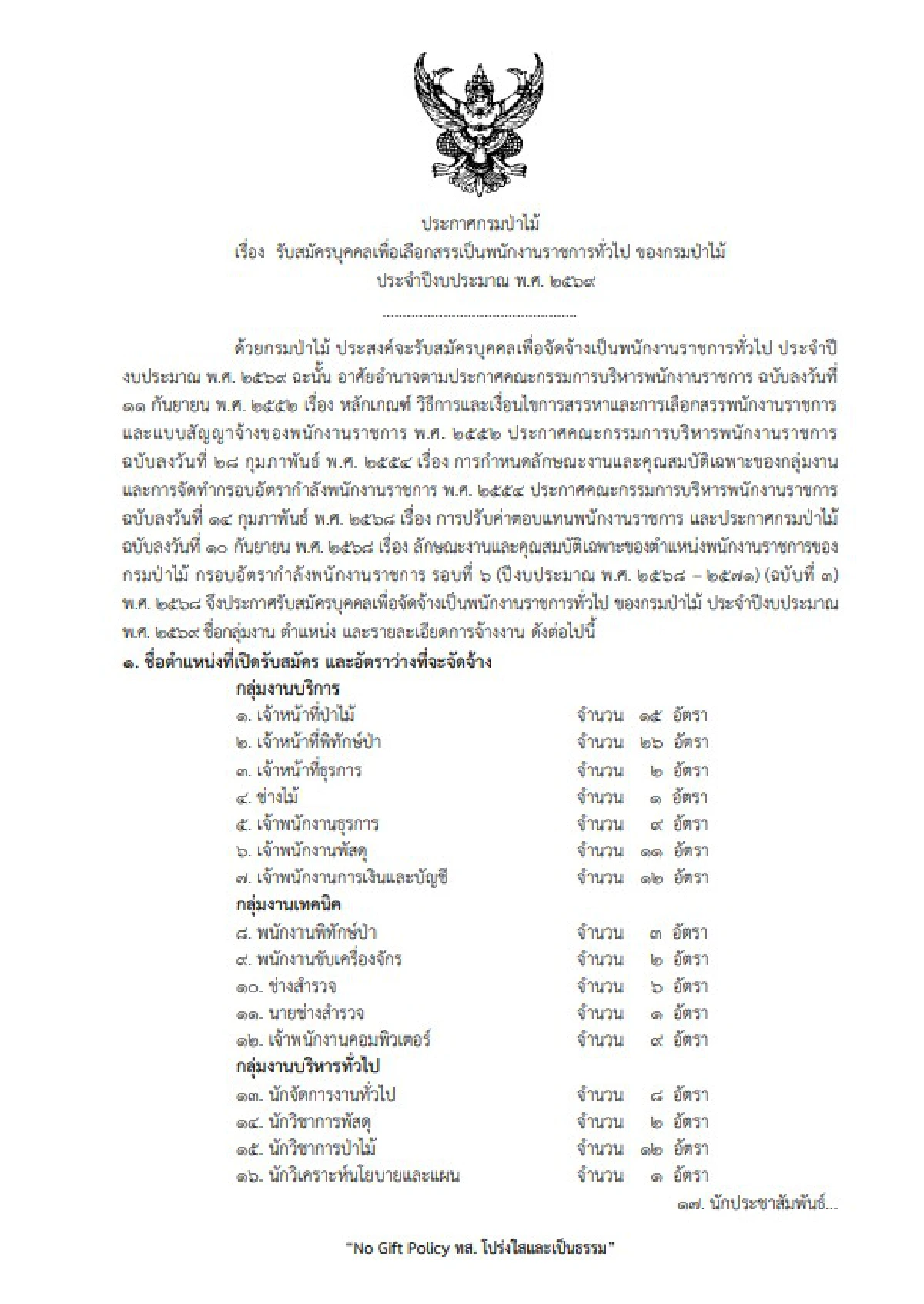 1. เจ้าหน้าที่ป่าไม้ จำนวน 15 อัตรา