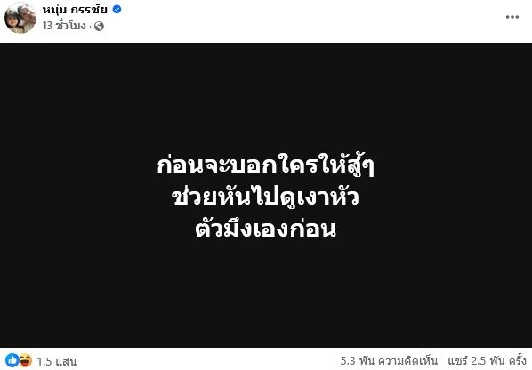 มีเรื่องให้พ่อเดือดอีกแล้ว ใครเป็นคนทำ หนุ่ม กรรชัย โพสต์ข้อความล่าสุดเมื่อคืนกลางโซเชียล คนที่ถูกพูดถึงน่าจะมีสะดุ้งแรงว่า “ก่อนจะบอกใครให้สู้ๆ ช่วยหันไปดูเงาหัว ตัวมึงเองก่อน”
