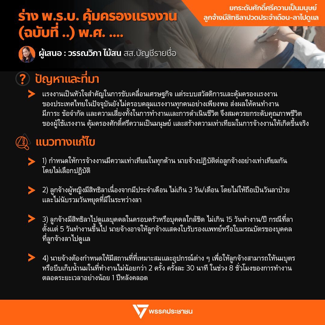 ที่มา : ปชน.ชวนจับตาพรุ่งนี้ ร่าง พ.ร.บ.แรงงานฯ 2 ฉบับ เพิ่มวันหยุด-วันลา-ปวดประจำเดือน - ข่าวสด