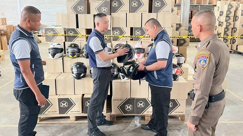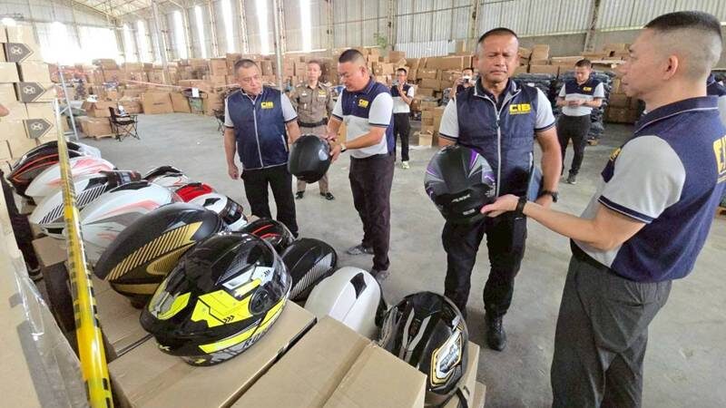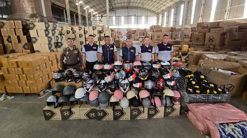 ยึดหมวกกันน็อก-ปลั๊กพ่วงเถื่อน นับแสนชิ้น มูลค่า 30 ล้านบาท นำเข้าจากจีน ไม่ได้มาตรฐาน