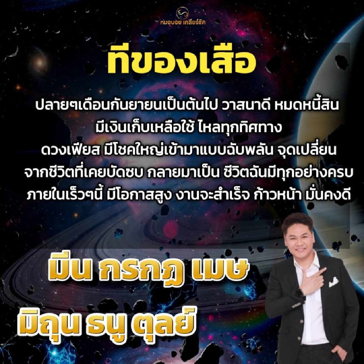 นักพยากรณ์ดัง "หมอบอย เคลียร์ชัด" เผย 6 ราศี ปลายเดือน ก.ย. ก้าวหน้า วาสนาดี มีเงินเก็บเหลือใช้ โชคใหญ่เข้ามาแบบฉับพลัน