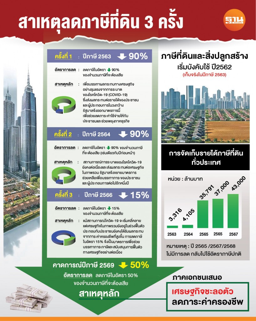 ที่มา : ลดภาษีที่ดิน50%กระตุ้นเศรษฐกิจแลนด์ลอร์ดรับอานิสงส์-อสังหาฯตีปีก