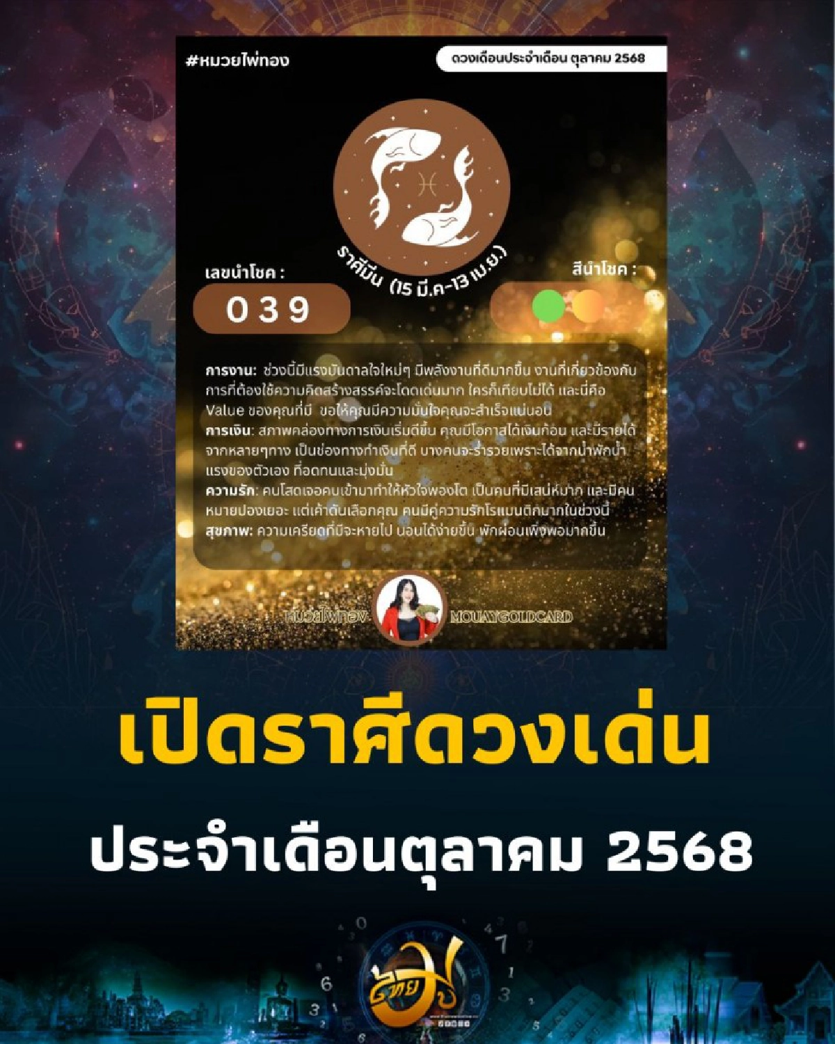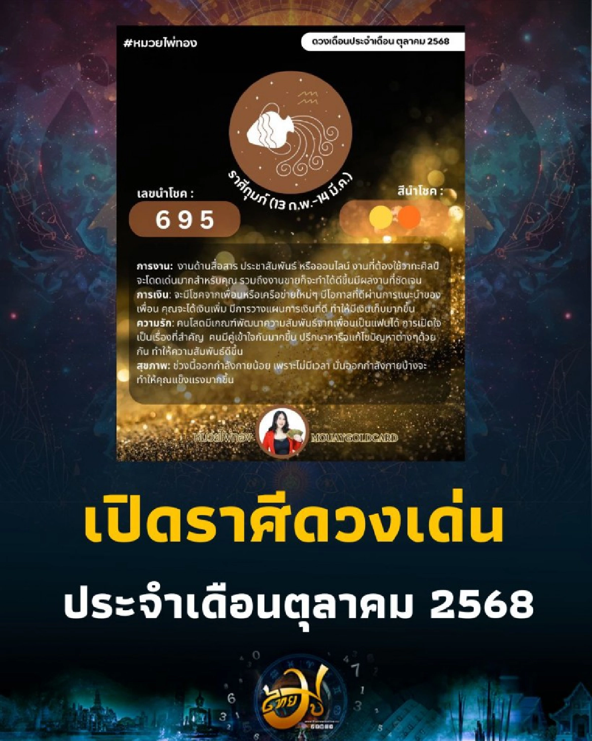 อัปเดต ดวงเดือนตุลาคม 2568 ดวงเดือนนี้จะเป็นอย่างไร เด่นในด้านไหน อาจารย์หมวย ไพ่ทอง ให้รายละเอียดไว้ดังนี้ค่ะ