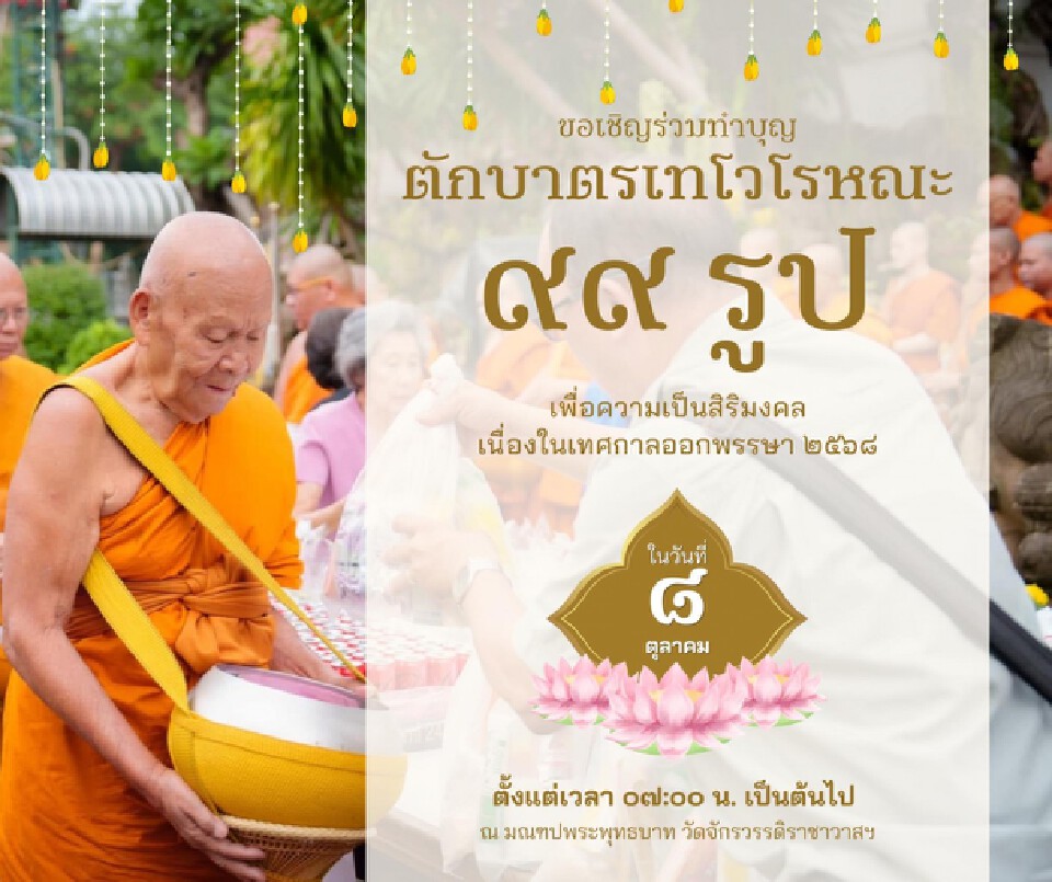 วัดจักรวรรดิราชาวาส วรมหาวิหาร ขอเชิญสาธุชนร่วมกิจกรรมตักบาตรเทโวโรหณะ