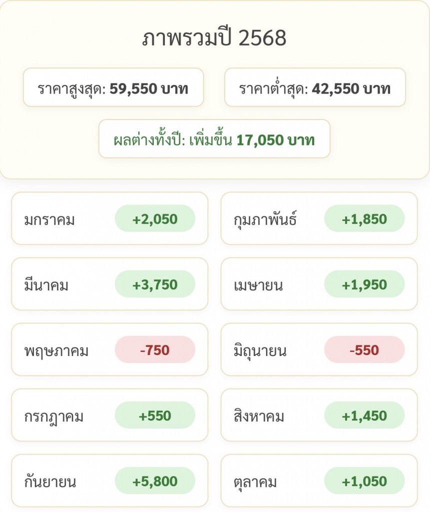- วันที่ 23 ก.ย. 68 เพิ่มขึ้น 1,050 บาท