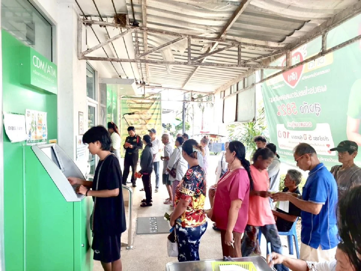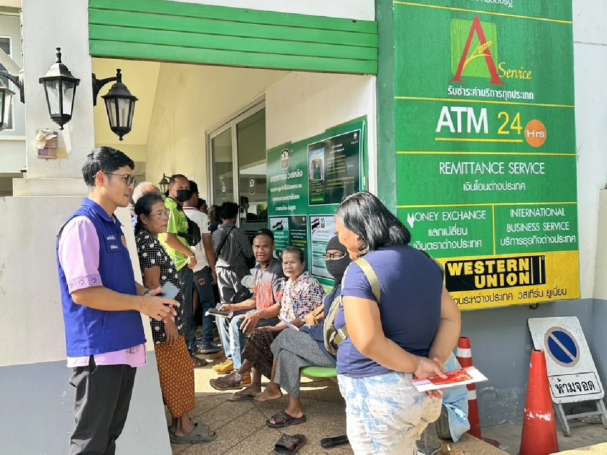 วันนี้ (7 ตุลาคม 2568) ที่บริเวณหน้าธนาคารกรุงไทย สาขาตาพระยา จังหวัดสระแก้ว มีประชาชนจำนวนหนึ่งเดินทางมาตรวจสอบสิทธิ์และเช็กยอดเงินที่ตู้เอทีเอ็ม หลังกรมป้องกันและบรรเทาสาธารณภัย โอนเงินเยียวยาตามมติคณะรัฐมนตรีเมื่อวันที่ 26 สิงหาคมที่ผ่านมา