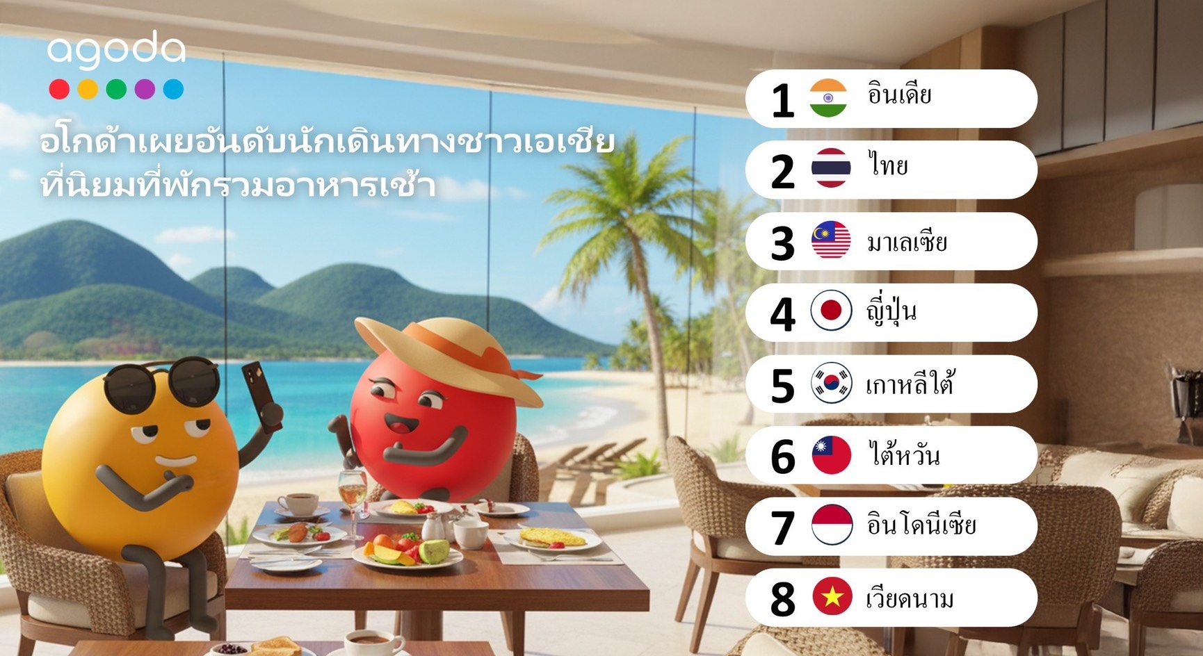 อโกด้า เผยเทรนด์นักเดินทางเอเชียเน้น “ที่พักพร้อมอาหารเช้า” ติดอันดับ 2 ของภูมิภาค คนไทยใช้ตัวกรองนี้มากถึง 13% ตามหลังอินเดียเพียงเล็กน้อย