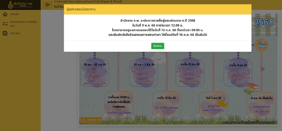 สำนักงานก.พ.อัปเดตล่าสุด 9 ต.ค.ประกาศรายชื่อผู้สอบผ่าน ภาคก.ปี 68