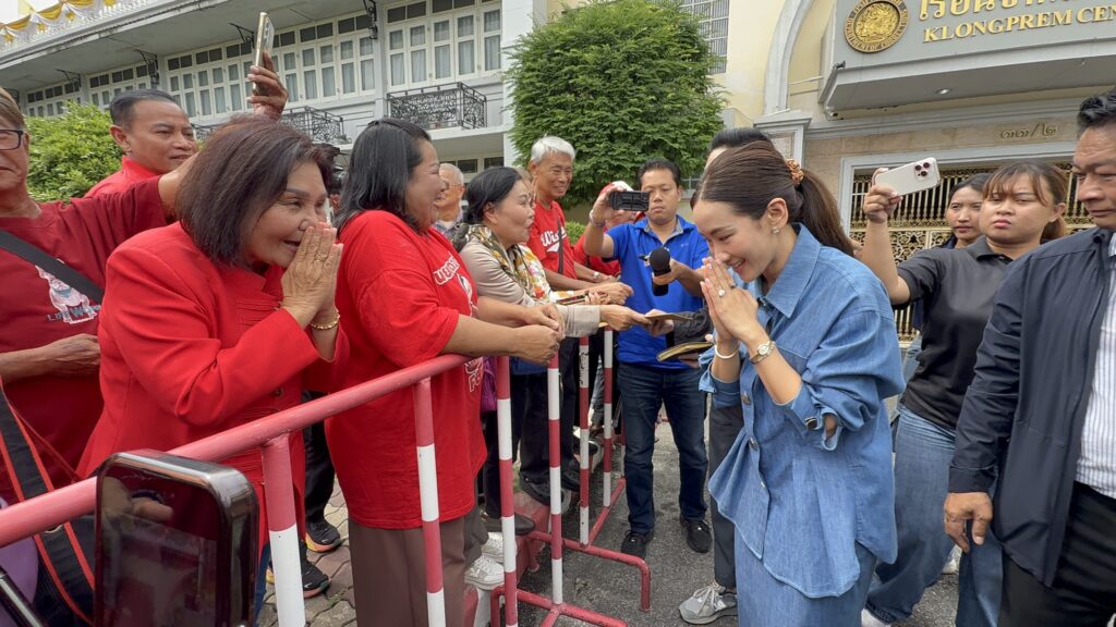 ขณะที่ มวลชนคนเสื้อแดง กล่าวให้กำลังใจ ว่า เราเป็นกำลังใจให้ เรามาจากจังหวัดศรีสะเกษ เราจะต่อสู้เลือกตั้งรอนาย ขอให้นายมีกำลังใจสู้นะคะท่านนายกฯ (พร้อมส่งยิ้ม และมองไปที่ใบหน้าของนายณัฐพงศ์ คุณากรวงศ์) ซึ่งทั้ง น.ส.พินทองทา และนายณัฐพงศ์ ต่างยกมือไหว้ขอบคุณ และร่วมบันทึกภาพกับทุกคน โดยเฉพาะนายปิฎก ที่กลายเป็นขวัญใจคนใหม่ของคนเสื้อแดง ต่างร่วมบันทึกภาพด้วยบรรยากาศชื่นมื่น
