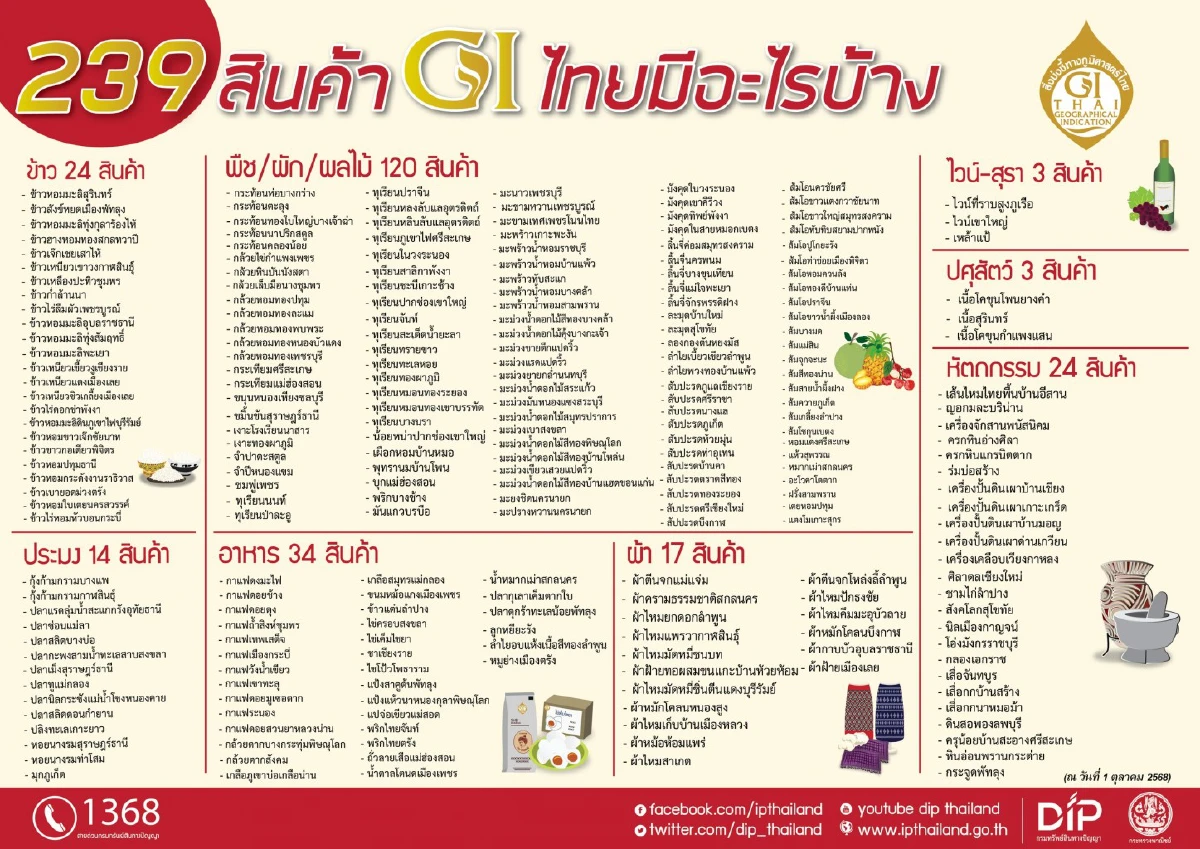 ที่มา : กรมทรัพย์สินทางปัญญา โชว์ความสำเร็จ ปี 68 เผย 10 สินค้า GI ไทยยอดฮิต ที่สร้างยอดขายติด Top 10