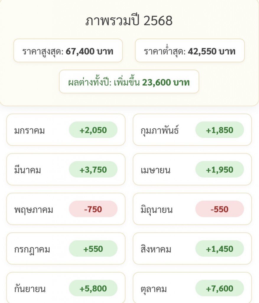 - วันที่ 6 ต.ค. 68 เพิ่มขึ้น 1,050 บาท