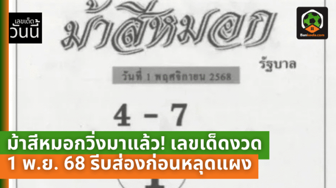ม้าสีหมอกวิ่งมาแล้ว! เลขเด็ดงวด 1 พ.ย. 68 รีบส่องก่อนหลุดแผง