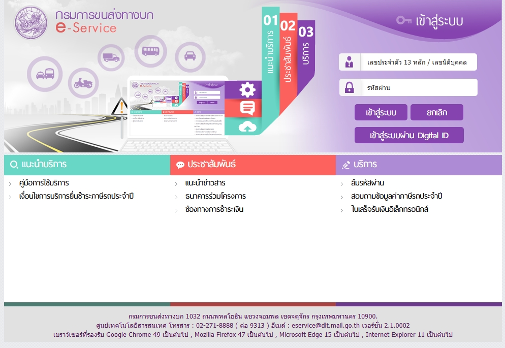 - เข้าเว็บไซต์ https://eservice.dlt.go.th